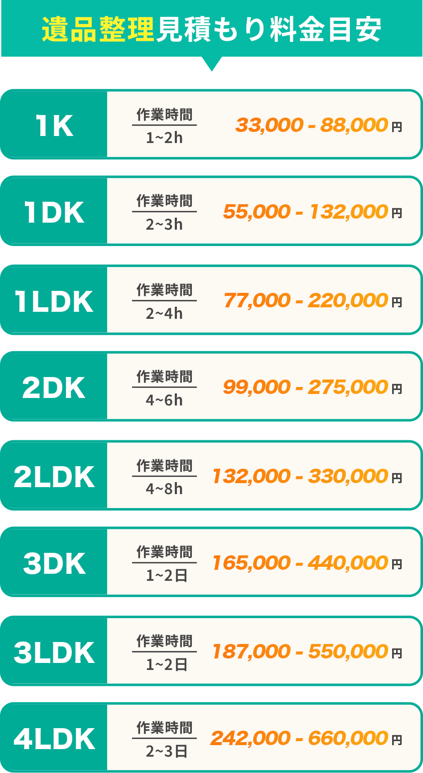 物量や内容によって異なりますが、事前に目安をお伝えします。