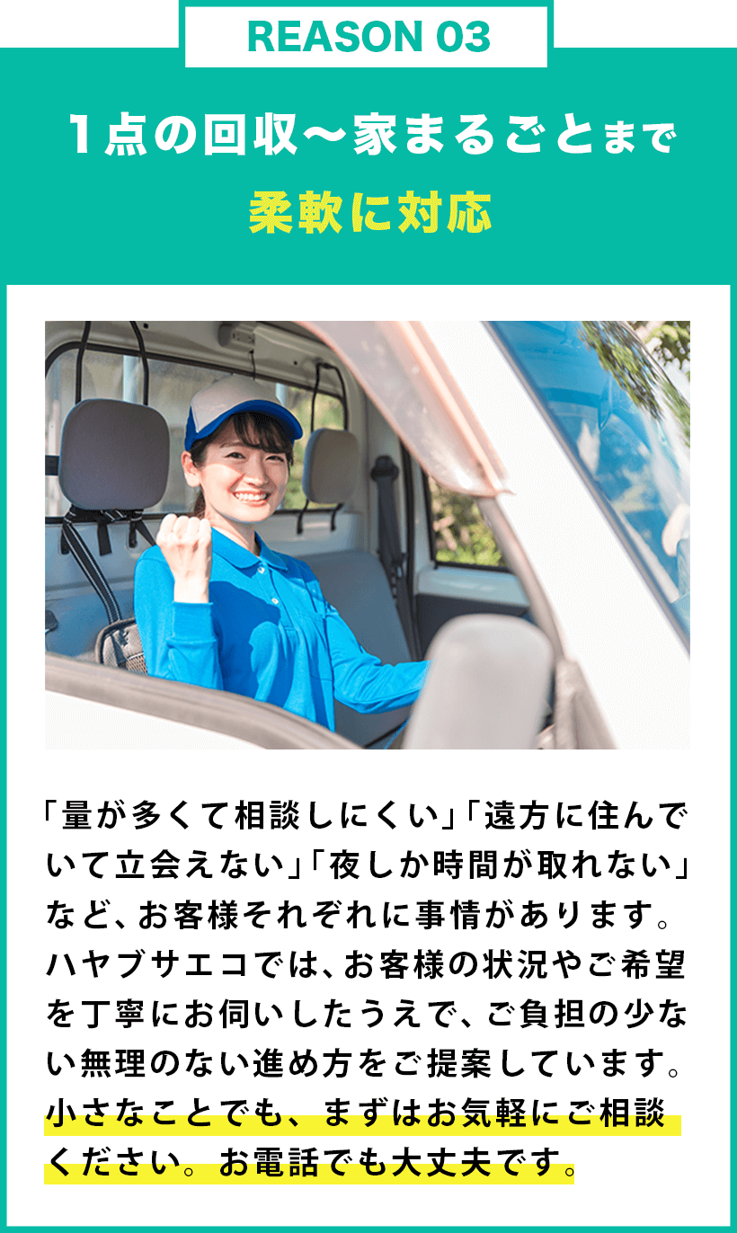 はい、ハヤブサえこでは回収する不用品の量に制限はありません。